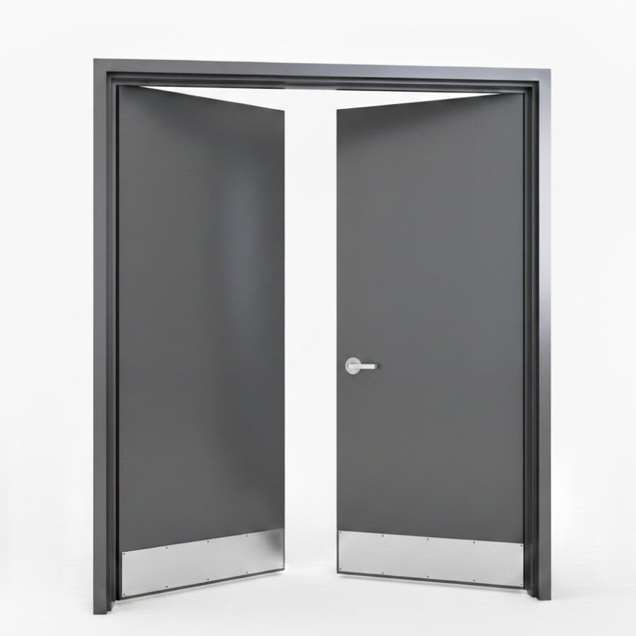 Constructed from heavy-duty sheet steel, these HM double doors combine the strength of solid steel with a lightweight, easy-to-operate design, allowing smooth operation and reliable daily use. The hollow metal core provides excellent insulation, improving energy efficiency, temperature control, and sound reduction in large commercial spaces.
